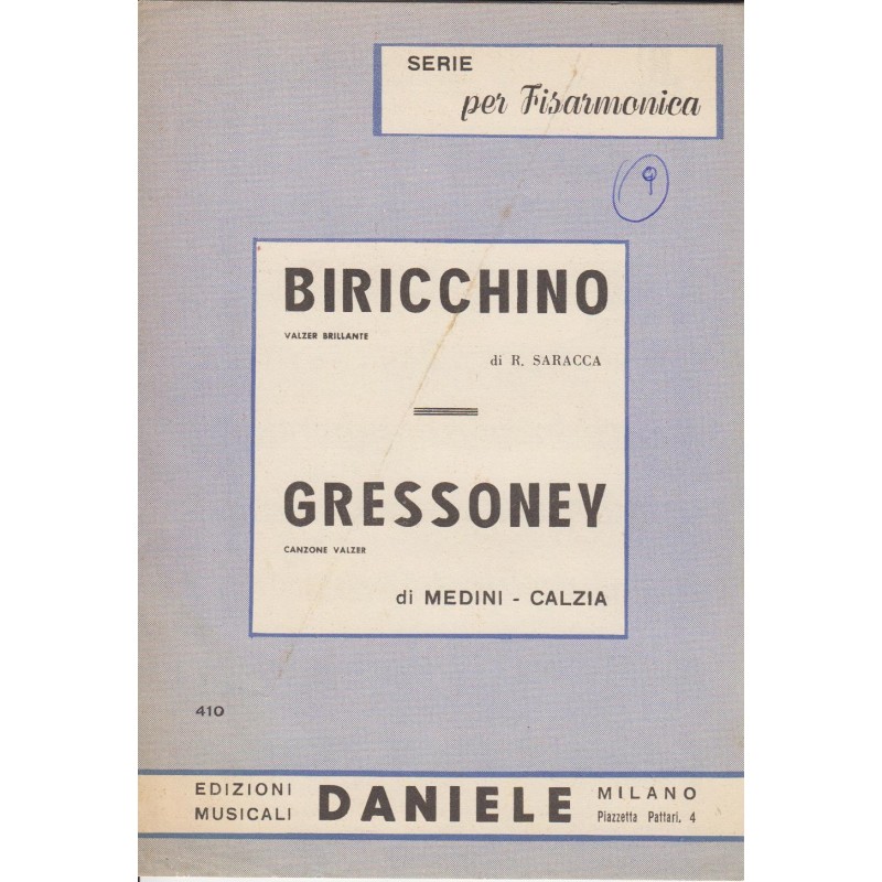 | Titolo: Biricchino, Gressoney Autore/i: R. Saracca, Medini Calzia Genere/i: Valzer, Strumento/i: Fisarmonica Raccolta di n° 2 brani Edizioni Musicali Daniele |