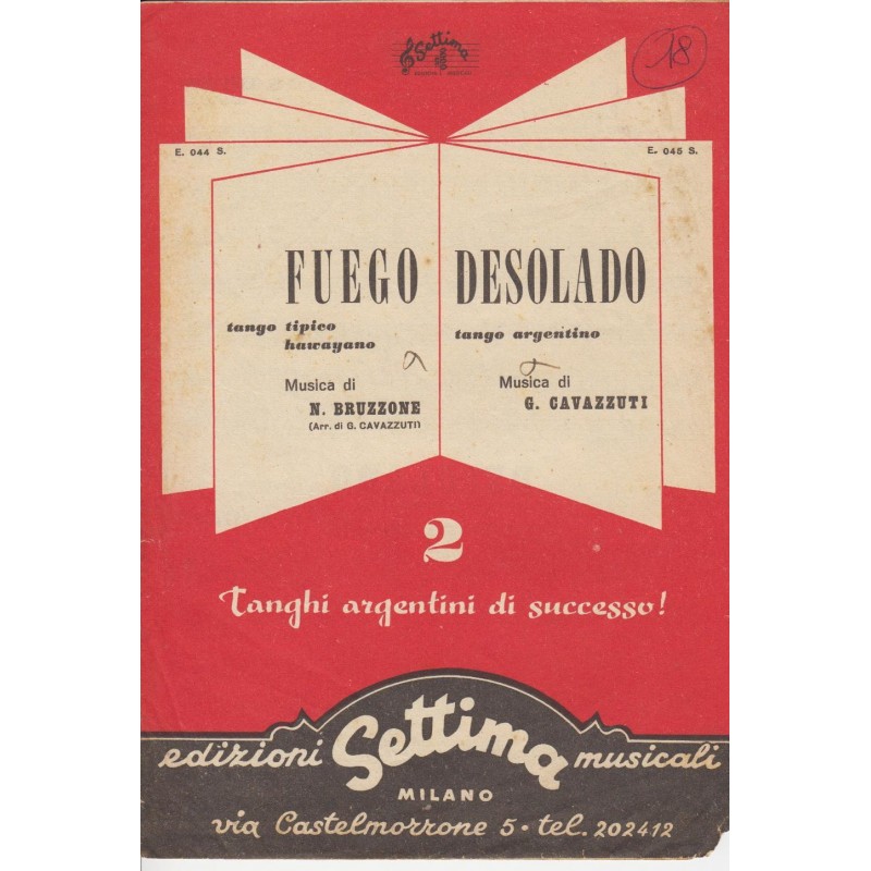 | Titolo: Fuego, Desolado Autore/i: N. Bruzzone, G. Cavazzuti Genere/i: tango tipico hawayano, tango argentino Strumento/i: Contrabasso, Chitarra, Raccolta di n° 2 brani Edizioni Settima Musicali |