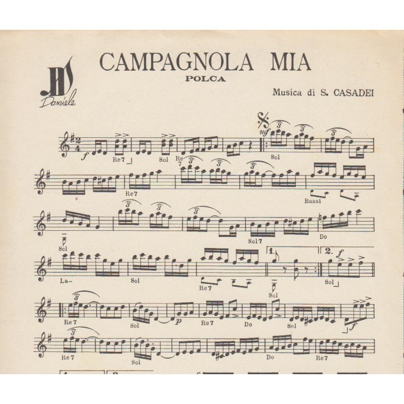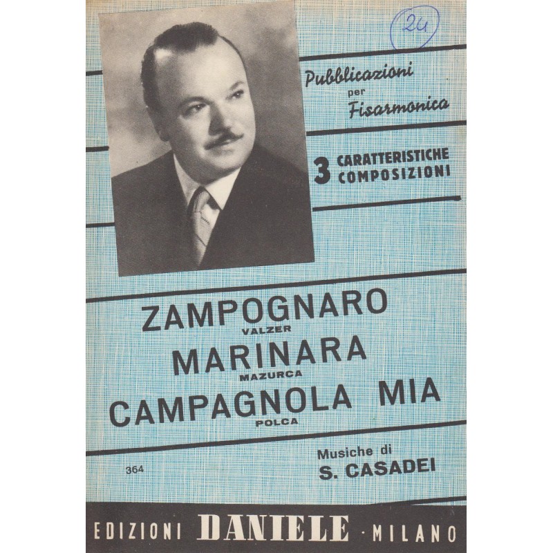 | Titolo: Zampognaro, Marinara, Campagnola Mia Autore/i: S. Casadei Genere/i: Valzer, Mazurca, Polca Strumento/i: Fisarmonica Raccolta di n° 3 brani Edizioni Daniele |