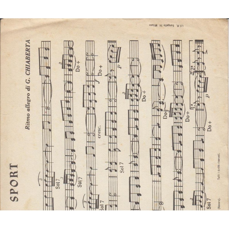 | Titolo: Armando, Adriana, Nevicata, Chimere, Renato, Perle, Sport Autore/i: G. Chiaberta Genere/i: Valzer , Mazurka, Polka, Tango, Strumento/i: Pianoforte, Fisarmonica Raccolta di n° 7 brani Edizioni musicali G. Chiaberta |