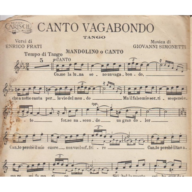 Spartito Music Sheet di `Canto Vagabondo`