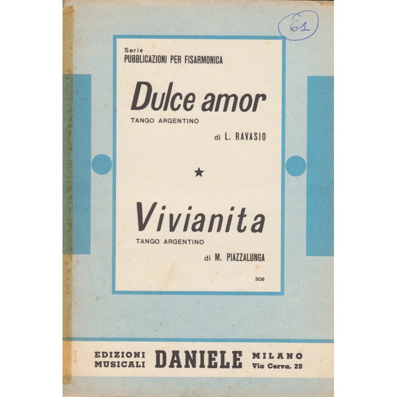 | Titolo: Dulce amor, Vivianita Autore/i: L. Ravasio, M. Piazzalunga Genere/i: Tango argentino Strumento/i: Fisarmonica Raccolta di n° 2 brani Edizioni Musicali Daniele |