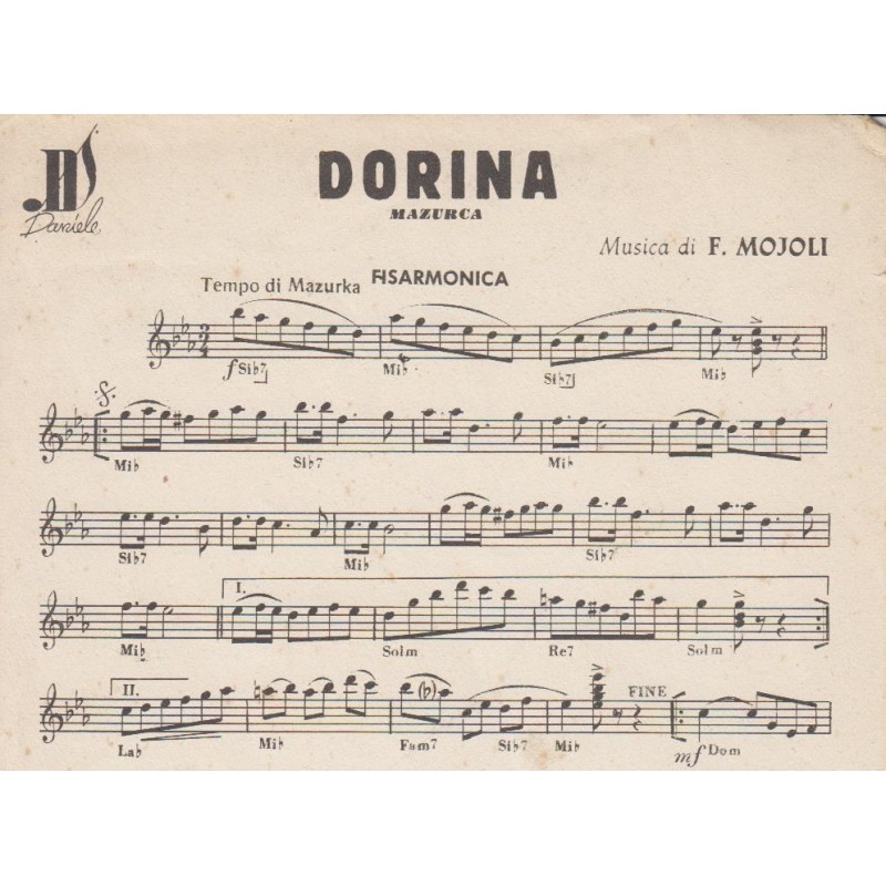 | Titolo: Bianco e Nero, Sui Trampoli, Dorina Autore/i: R. Bertù, A. Cigala, F. Mojoli Genere/i: valzer brillante, mazurca Strumento/i: Fisarmonica Raccolta di n° 3 brani Edizioni Musicali Daniele Milano |