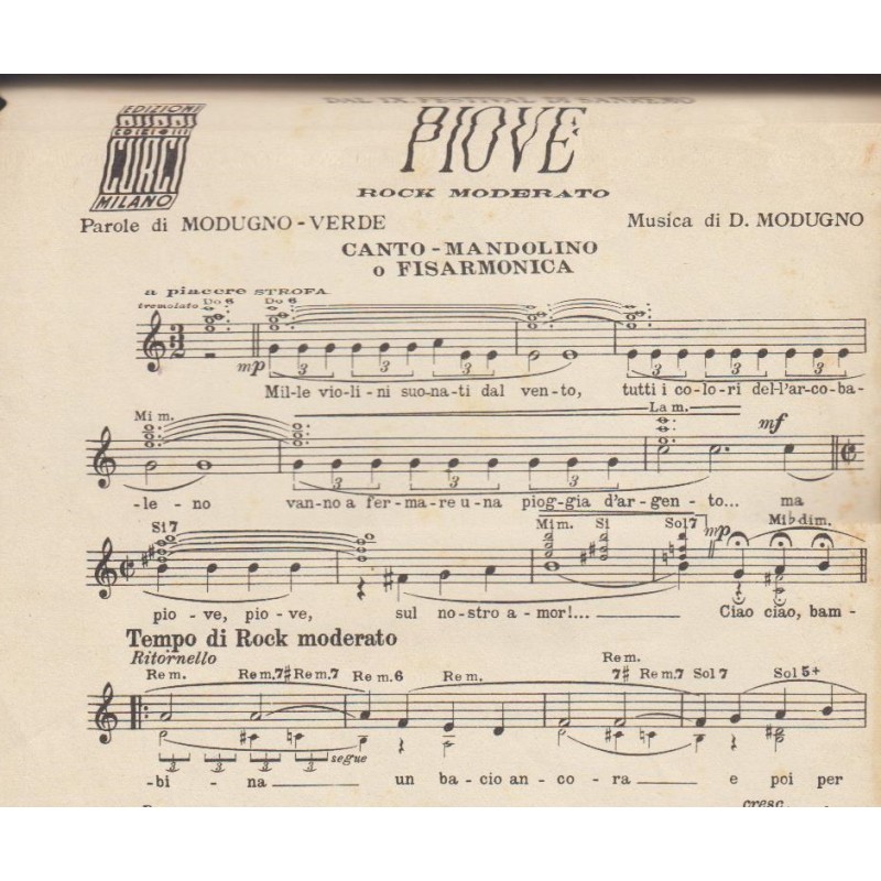 | Titolo: Piove Autore/i: D. Modugno, Verde Genere/i: rock moderato Strumento/i: Mandolino, Fisarmonica Raccolta di n° 1 brani Edizioni Curci Milano |
