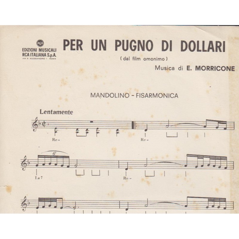 | Titolo: Per un pugno di dollari Autore/i: E. Morricone Genere/i: Lento, Moderato Strumento/i: Mandolino, Fisarmonica Raccolta di n° 1 brani Edizioni Musicali RCC Italiana S.p.a. |