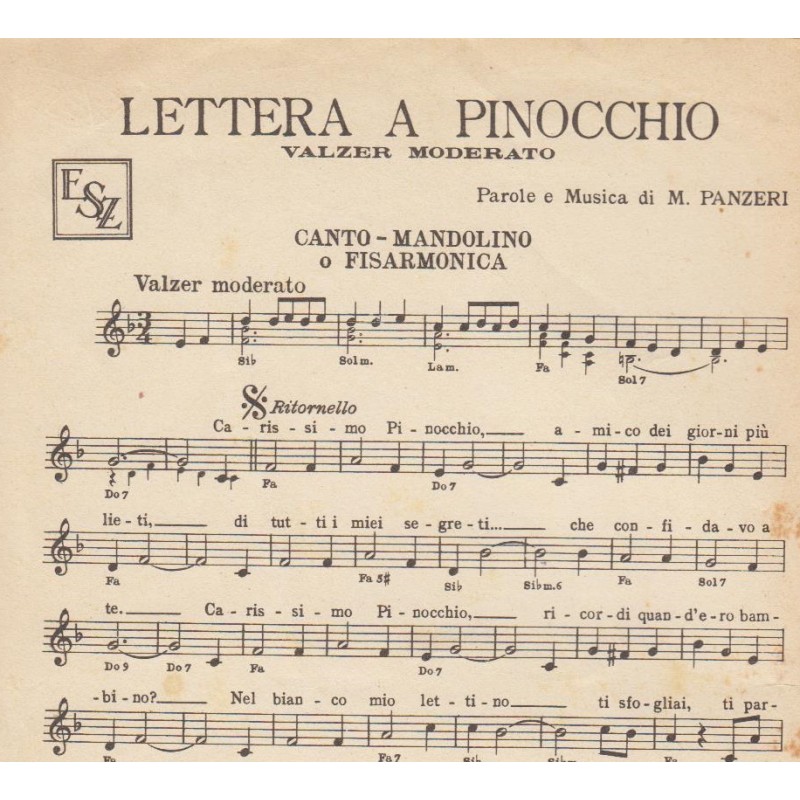 Spartito Music Sheet di `Lettera a Pinocchio` - valzer moderato