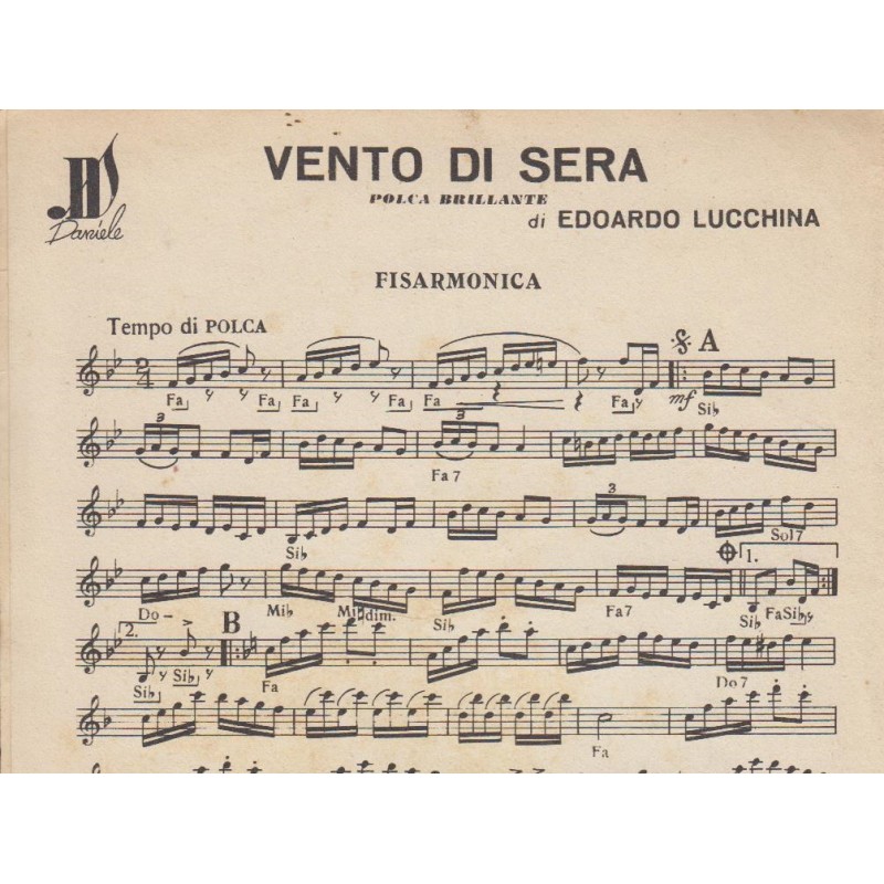 | Titolo: Burrasca, Vento di Sera Autore/i: Edoardo Lucchina Genere/i: Valzer brillante, Polca brillante Strumento/i: Fisarmonica Raccolta di n° 2 brani Edizioni Musicali Daniele Milano |
