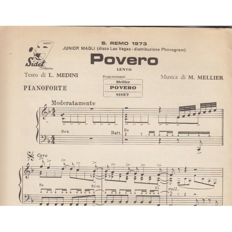 | Titolo: Ogni notte, ogni giorno, Povero Autore/i: M. Mellier, Genere/i: Lento, Strumento/i: Pianoforte, Raccolta di n° 2 brani Edizioni Musicali Sidet |