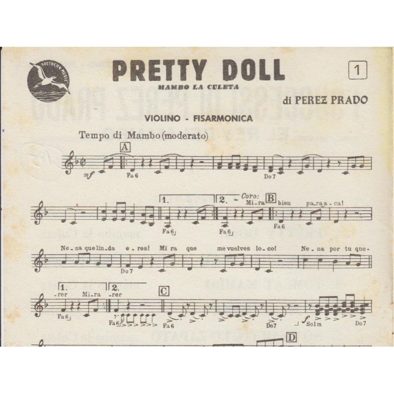 | Titolo: Pretty Doll, A la Billy May, Tomcat Mambo, El Mene Mene, No te quite lo zapato, Ni Hablal, Politecnico, Rosina, Ana la Polaca, Koldoba Autore/i: Perez Prado, Genere/i: mambo, Strumento/i: Violino, Fisarmonica, Raccolta di n° 10 brani Edizioni Southern Music |