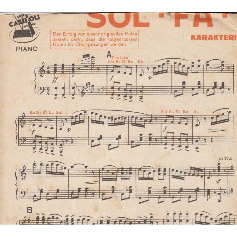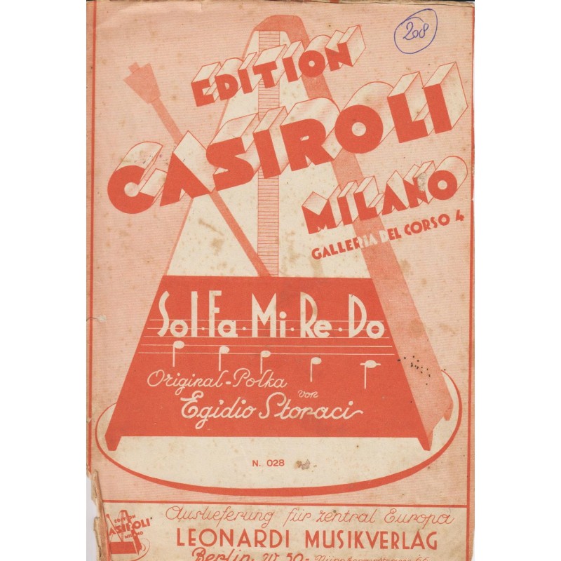 | Titolo: Sol.Fa.Mi.Re.Do Autore/i: E. Storaci Genere/i: polca Strumento/i: Polka Raccolta di n° 1 brani Edizioni Musicali Leonardi Musikverlag |