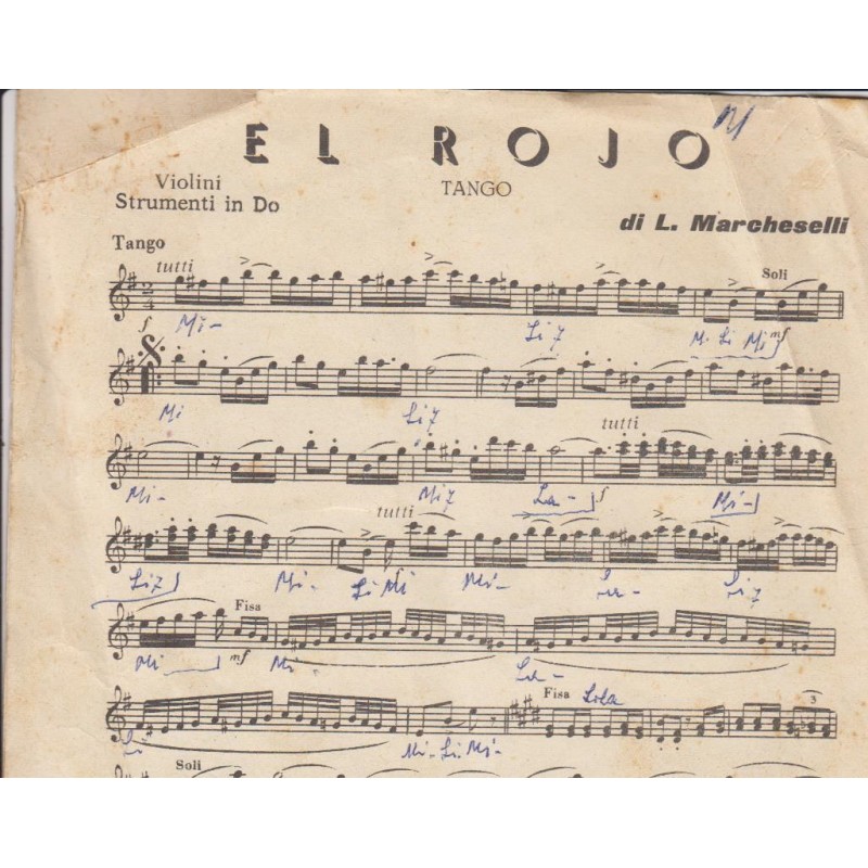 | Titolo: Vaquero, El rojo Autore/i: L. Marcheselli Genere/i: Tango Strumento/i: Violino, Raccolta di n° 2 brani Edizioni Musicali Leonildo Marcheselli |