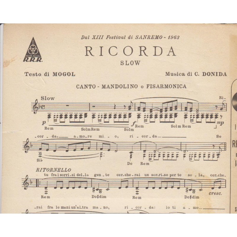 Spartito Music Sheet di `Ricorda` - Slow