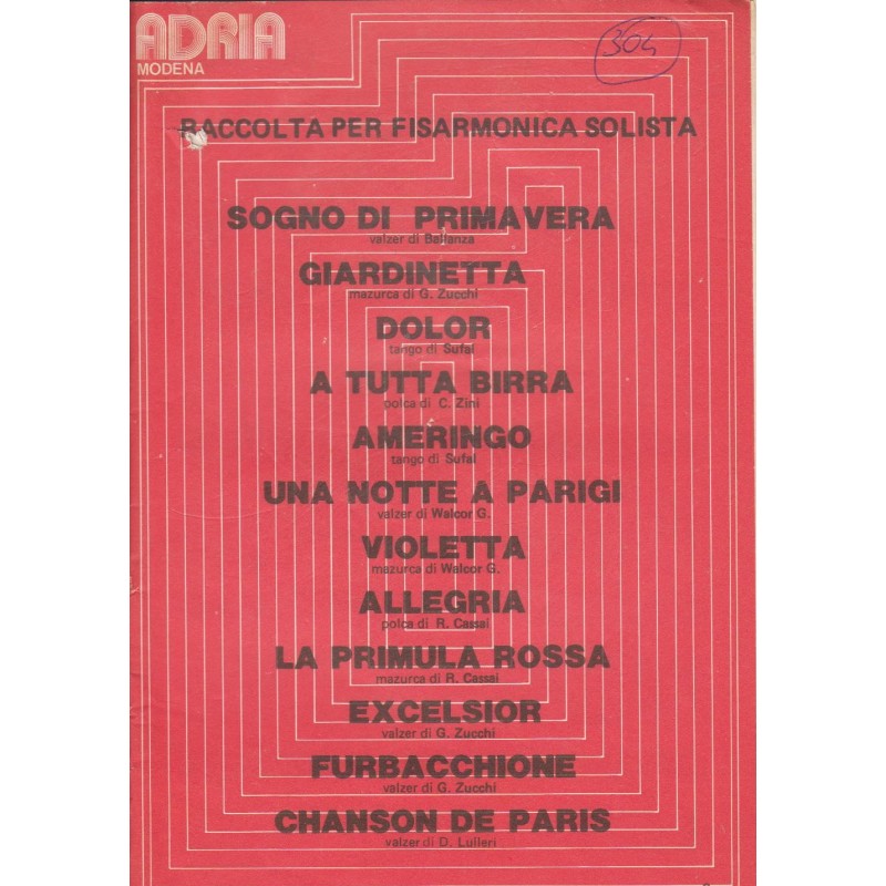 Titolo: Sogno di Primavera, Giardinetta, Dolor, A tutta birra, Ameringo, Una notte a Parigi, Violetta, Allegria, La primula Rossa, Excelsior Furbacchione, Chanson de Paris